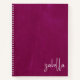 This modern minimalist notebook features your name in a white handwritten script calligraphy on a light plum background. The typography is stylishly placed in the lower right corner. Perfect for office, dorm, back to school, or business.
