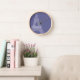 Lavender Veri Peri Eiffel Tower White Dots Custom Wall Clock - Your Name - or change to read whatever you like. You Choose Background colour - black changes to any colour. To change colour click customise then edit and use the last tool on the drop down menu to choose from the colour swatches or enter your RGB code for a one of a kind designer clock!