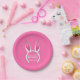 Plates feature an original illustration of a pair of bunny ears. Simply personalise with your due date for a fun baby shower plate!