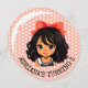Cute Little cartoon Kawaii style girl with a coral bow in her hair and white polka dots Birthday Invitations.