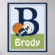Personalised Little Sports Player Letter Name Poster/Print. You can change the letter and name to whatever you want. You can also change the font style and colour and move the images around to your liking.