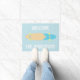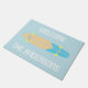 Welcome guests in style with this personalised doormat featuring an illustration of a longboard skateboard in a retro style. The tan, bright blue and bright yellow skateboard is set against a light blue background with a welcome message and your name in bold white lettering.