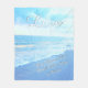 Personalised Turquoise Blue Love Beach Wedding Throw Blanket in Medium or Large. Type in the wedding Couple's NAMES, Wedding Date and or Short Special Wedding MESSAGE or Delete it. Serene beach gentle strolling waves gently roll up to the beach with a peak of the sunset glowing on the waters. Wonderful personalised wedding blanket for couples who have everything. Original photography copyright 2016 © Little Linda Pinda Designs. CALL Linda to create matching and coordinating personalised wedding gifts for couples. 239-949-9090