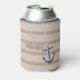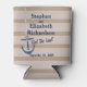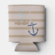 A nautical theme can cooler that can easily be personalised for weddings, engagements, anniversaries or any event that calls for remembering. The blue anchor and tan stripes are part of the design but the background colour, text colour and style can be customised to coordinate with an individual colour scheme. Easy to personalise for any event. Design by Night Owl's Menagerie, 2015.