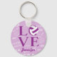 Cute personalised love netball design, with painted lve letters and netball for the O, background is pink with various netball positions, terms and netball related themes in the background in white.