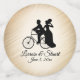 Rustic country design of a married couple riding a bicycle with names and date