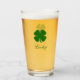 Simple Irish Four Leaf Clover Emerald Green Shamrock Beer Pint Glass - Customise it with your own personalised names, words, colours!