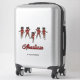 The stick looks amazing. Unfortunately, it would not stick on our suitcase as it was textured. When we found a non-textured (smooth) suitcase, the sticker stuck and looks great. The printing looked awesome.