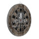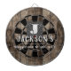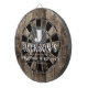 Faux wooden background with monogram and family name in centre of the board. Other colours available in the shop. This fun template lets you create your own personalised man cave "your name" whiskey or bbq backyard bar dart board sign. Unique fun gift