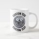 Personalised text Man in the Moon custom Happy Face extra large 20 oz. Giant Jumbo coffee mug. A great gift for a budding astronaut, astronomer, outer space enthusiast. See store for full range of personalised options. Fully personalise all text with your message(s). One-click customisation of upper and lower text on each side of the customised mug by clicking 'Personalise this template'. Make your own birthday gift for a child or anyone who likes funny mugs, or create your own Christmas stocking stuffers or customised staffroom / office mug.