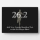 Finishing a 26.2 mile marathon race is a big deal for any running enthusiast! Mark the occasion with personalised memorobilia. Add your name, race title, and time or other text to this personalised long distance runner keepsake memorobilia or motivational training gear. Features grey shadow silhouette of a runner with 26.2, running race distance in shades of grayscale black and white. Black and white with your custom text. Great gift to commemorate completion of a sports marathon for a running fanatic or cross-country jogging sports fan.