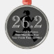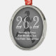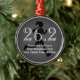 Female runner for a womens marathon keepsake ornament. Finishing a 26.2 mile marathon race is a big deal for any outdoor running enthusiast! Add your name, event and time or other text to this personalised long distance runner keepsake, great for the athlete or womens fitness runner. Features grey shadow silhouette of a runner with 26.2, running race distance in shades of grayscale black and white. Black and white with your custom text. Great gift to commemorate completion of a sports marathon for a running fanatic or cross-country jogging sports fan.