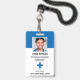 Personalise these horizontal medical personnel badges with an employee photo and name, along with multiple custom text fields for hospital or healthcare facility name, unit or floor, title abbreviation, employee ID number, or valid through date, along with the medical centre logo. The title or role appears along the bottom in bold black lettering for easy identification. Customise with a barcode on the back if needed, along with return information or other details.