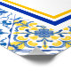 Newlywed home decor wall art featuring Mediterranean tile patterns, elegant script calligraphy, and a playful watercolor gelato ice cream design. Inspired by Italian coastal home decor and the sunny charm of the Amalfi Coast, this modern stylish poster captures the spirit of la dolce vita with bright blue and lemon citrus yellow tones and a relaxed Mediterranean summer aesthetic. Perfect for adding a chic, cheerful accent to a newlywed home, kitchen, or living space.
