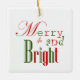 The artwork features the decorative calligraphy of "Merry and Bright" in a festive Christmas red and green design along with a customisable photo and typography field for name, date, holiday wish or other personalisation.