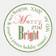 The Christmas stickers feature decorative calligraphy of "Merry and Bright" in festive red and green, with a customisable typography field encircling it that currently says "Wishing you & yours a joyous holiday season!" for adding wishes, names, years, or other personal touches in green. They are perfect for Christmas card mailings, DIY decoration projects, scrapbooking, sharing cookies with family, friends, and neighbours, party favours, gift labelling, and adding a dazzling touch. These stickers are ideal for spreading holiday cheer, joy, and Christmas spirit.