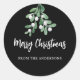 Personalised Merry Christmas Berries Leaves Black Classic Round Sticker