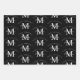 Personalised Merry Christmas Black White Monogram Wrapping Paper Sheet