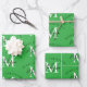 Personalised Merry Christmas Green Monogram Wrapping Paper Sheet