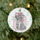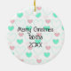 Personalised Merry Christmas Grey Kitten Pink Bow Ceramic Ornament