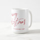 Celebrate the holiday season with this elegant Merry Christmas mug featuring a modern handwritten script design. Available in multiple festive colours, this mug makes a thoughtful and cosy gift for family, friends, or coworkers. Personalise it with your family name and year to create a unique keepsake that will be cherished for many Christmases to come. Perfect for sipping hot cocoa, coffee, or tea while enjoying the holiday spirit.