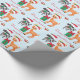 This festive and fun whimsical personalised Merry Christmas wrapping paper has cute woodland animals wearing Santa caps. It includes a brown deer, a cartoon racoon, a brown robin, and a green present with a red bow on it. The background colour is pale blue but you can change it to whatever colour you want and there is customisable text for you to personalise how you want.