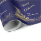 This festive personalised navy blue and gold Merry Christmas wrapping paper has a gold tone Christmas or Holiday tree with ribbons and star dust on it. If you need any matching items, or if you need assistance or changes, please email niteowlstudio@gmail.com.