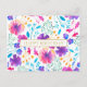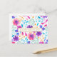 Colourful vibrant watercolour flowers and sprigs reworked into a repeating pattern. A rainbow of fluro colours stand out against the dark navy blue background. Add your personal message to the front - Happy Birthday,Happy Anniversary , Thank You or whatever sentiments you would like to send.