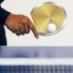 Personalised, shiny metallic gold with a silver grey border. Customisable monogram.