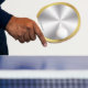 Personalised, shiny metallic silver-grey with a gold border. Customisable monogram.