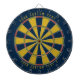 Dartboard with a mid-century colour scheme (dark blue, red, green and mustard yellow) with your personalised text on the top and bottom of the board. Add this to your mid-century modern home decor!