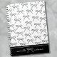 The top of the notebook features a playful pattern of hand-drawn bows, bringing a whimsical and girly flair to the design. At the bottom, a sleek black rectangle frames the page, with clean line details and a single white bow centred in the middle. Below the bow, your first name is elegantly placed on the left and last name on the right in delicate handwritten script calligraphy, creating a balanced and stylish look.