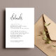 Provide your guests with essential information in an elegant and refined manner with our personalised minimalist elegant wedding details enclosure card. Ideal for upscale weddings, intimate receptions, and sophisticated destination ceremonies, this sleek design complements a wide range of wedding themes. The minimalist yet elegant layout allows you to share important details such as venue information, dress codes, and special instructions in a stylish and practical way. Fully customisable to match your wedding aesthetic, this enclosure card adds a polished and personal touch to your invitations, ensuring your guests have everything they need for your big day.