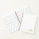 This modern minimalist notebook features your name in a chic handwritten gold script calligraphy on a white background. The typography is stylishly placed in the lower right corner. Perfect for office, dorm, back to school, or business.