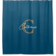 Personalised Simple Navy Blue Monogram Shower Curtain.