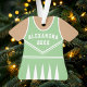 Celebrate your cheerleader's spirit with this personalised mint green and white uniform ornament. Perfect for commemorating a special season, team, or individual achievement. Customise it with a name and year to create a unique keepsake.