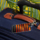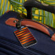 Create a personalised luggage tag with stylish black and orange design. Template text makes it easy to type your name, address, phone and other contact information.