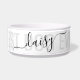 Black and white dog bowl with grey "BEST DOG EVER" and your dog's name customised in a chic and elegant calligraphy script font text overlay. Enter any personalised text you like for the background and top layer of text to create your own personalised modern and minimal and fun ceramic pet food or water bowl. See our collection of coordinating bowls and get a set!