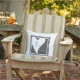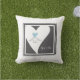 The product design features two white doves roost together and look up towards a light blue heart. White doves are symbols of love, luck, peace, and prosperity. This simple birds illustration makes a cute modern and unique outdoor pillow with personalised text - Gift idea for wedding, bridal shower, anniversary, or any other romantic occasions.