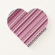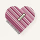 A unique heart-shaped spiral notebook featuring personalised pink mauve vertical stripes. Perfect for journalling, notes, or gifting.