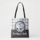 The design features a pair of ice skates over a snowflake crest and an off-white tartan pattern background. This elegant winter sports design serves as a cute modern and unique tote bag with personalised text. Gift Idea for figure skater, ice dancer, speed skater, and more!