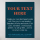 Personalised Modern Text Black Poster. Add your own text to personalise. Shown in white, orange, blue text on turquoise. Excellent poster for authors, writers, bloggers, editors, publishers, poets, indie authors, and other bookish people, teens, bands, or anyone who wants a personalised poster!