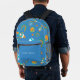Add your childs name or initials to this beautiful back pack featuring rockets and boho rainbows on a blue background, ideal for school or sports club. if you have any issues with this design please contact me janine by my message button in my store willow spring studio and ill be happy to help.