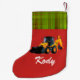 Personalised Modern Yellow Loader Tractor on Red Small Christmas Stocking