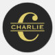 Personalised Monogram And Name Black And Gold Classic Round Sticker