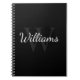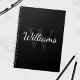 features personalised name in white script font style and monogram in grey serif font style as background, on black background.