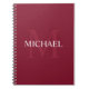 features personalised name in white and monogram in light burgundy red as background, in classic serif font style,