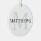 features personalised name in grey and monogram in light grey as background, in classic serif font style,