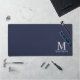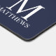 features personalised monogram and name in white classic serif font style on navy blue background.