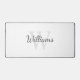 features personalised name in grey script font style and monogram in light grey serif font style as background, on white background.